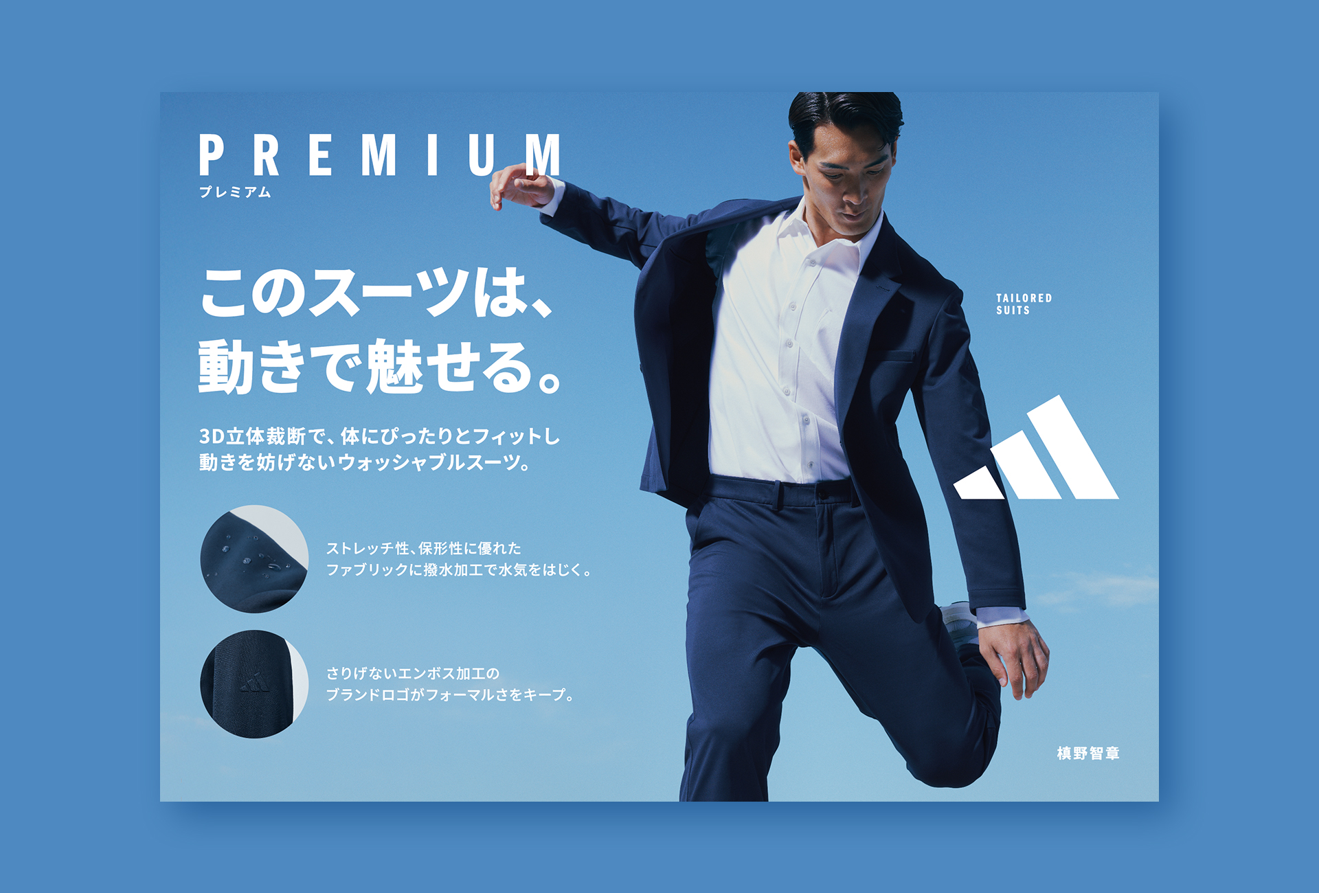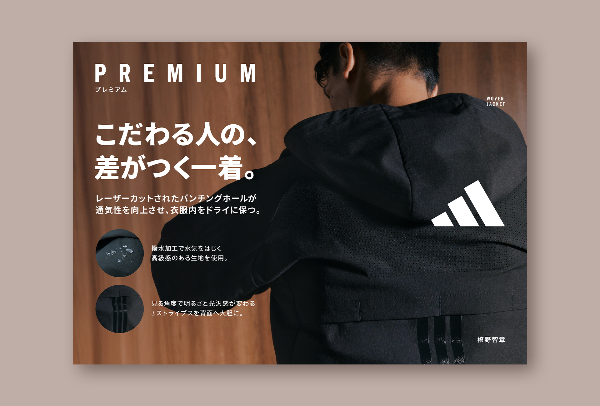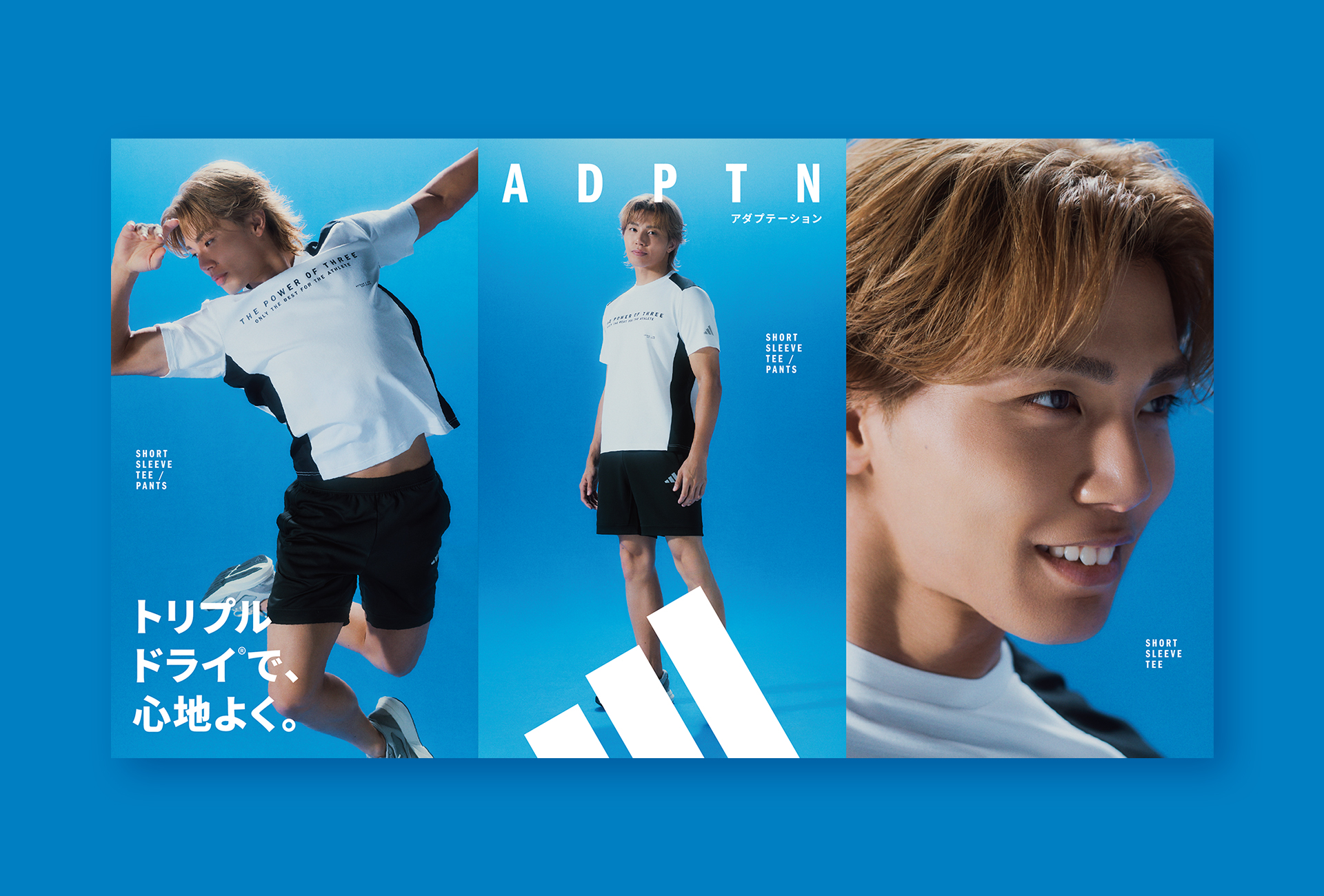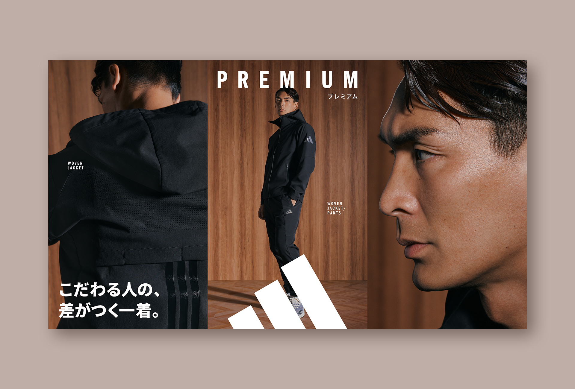 アディダスの多彩なプロダクトと、著名アスリートやタレントを掛け合わせたプロモーション企画。ウォームアップウェアではTHE RAMPAGEの武知海青さんを、ウォーキングシューズではヌートバー選手を、高機能トラックスーツでは元サッカー日本代表の槙野智章さんを主役に起用。出演者の個性やダイナミックな動きを通して、製品が持つ機能性や心地よさを直感的に伝えるクリエイティブを開発。 商品の機能特性を“生活者が実感できる価値”へと翻訳し、より身近に、かつ魅力的に体感できるビジュアルを制作。商品理解の深化と購買意欲の喚起を両立させ、機能訴求を生活者の心に届く体験へと昇華し、強いインパクトとブランドへの共感を獲得するプロモーションをデザインしました。